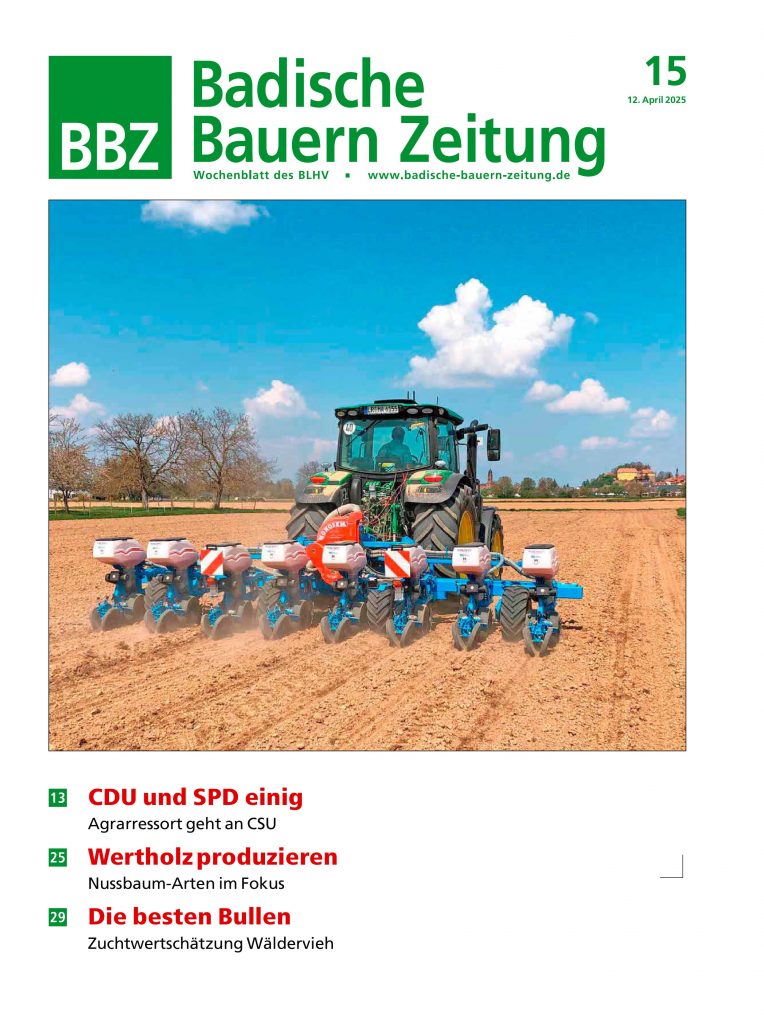 Die Badische Bauernzeitung BBZ ist das Organ des Badischen Landwirtschaftlichen Hauptverbandes BLHV. Sie erreicht 87% der Agrarprofis im Verbreitungsgebiet Baden. Verbreitete Auflage 11.519 Exemplare (IVW Q2/2024).
